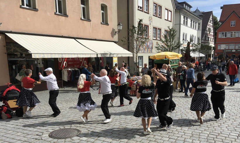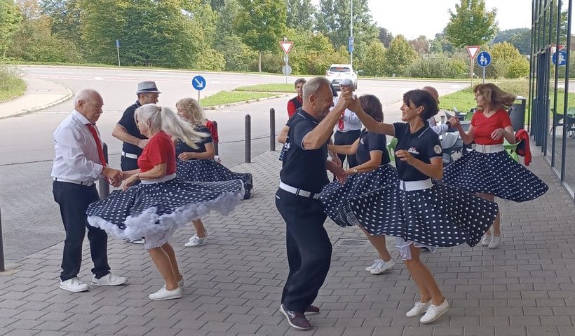 21.09.2024 Red Cadillacs mit 6 Paaren auf der Landesgartenschau in Wangen beim „Boogie-Musik-Picknick“ mit ihrer „Boogie-Lightshow“.